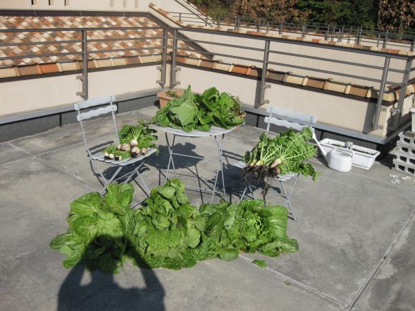 本日は、とても天気が良くて収穫日でした。でも榛原の冬はとても寒いので室内で収穫を行いました。野菜は、白菜とカブ、大根を収穫しました。